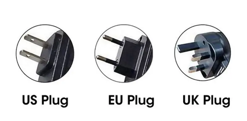 1. O plugue dos EUA é de 110 V, o plugue da UE e o plugue do Reino Unido são de 220 V.