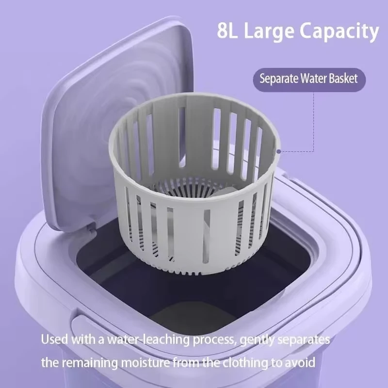 Máquina de lavar dobrável 8L, portátil, meias, roupas íntimas e calcinhas, retrátil, doméstica, 3 modelos com centrifugação e secagem rápida