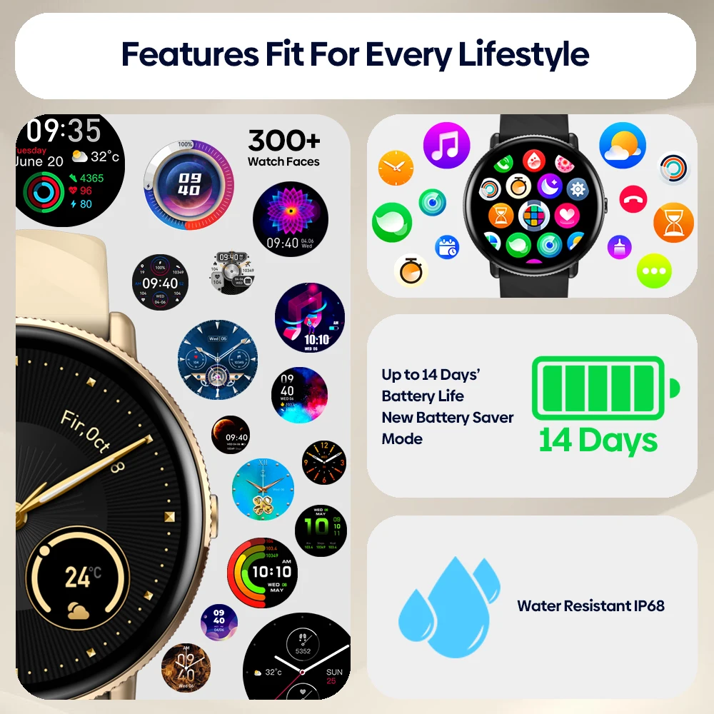 - Tela : AMOLED 1,43″ (466 x 466)